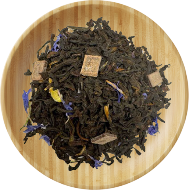 Saveur chocolatIngrédients: Thé noir Ceylan, -Inde du Sud, -Chine, arôme, Chocolat (sucre, pâte de cacao, beurre de cacao, émulsifiant : lécithine (E322)) , cerise, arôme naturel de fraise, fleurs de bleuet.Préparation: